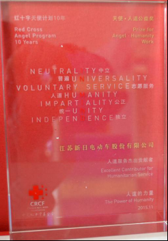 一直以来,新日电动车秉承“有阳光就有新日”的发展理念,广泛地参与社会慈善公益事业,回报社会、造福社会。从“四度情暖西藏珠峰小学”,到“新日阳光,关爱乡村医生”项目启动;从“助力博乐市公安维稳警务巡逻车”,到为外卖小哥打造专属车辆闪电侠,再到现在“西藏质量行——林芝一中援助行动” “母亲健康快车爱心巡诊甘肃行”……据不完全统计,新日自成立19年来,累积向社会捐款捐物价值已逾1亿元人民币。新日电动车先后获得无锡锡山区委授予的“热心参与慈善事业先进单位”,中国红十字基金会授予 的“人道服务杰出贡献奖”,中国扶贫基金会评为的“民生行动先锋”等光荣称号。一个行业的发展需要正能量指引,一个社会的进步需要正能量领航,新日电动车作为行业的领军品牌,引领行业为社会源源不断的输出正能量是新日在履行其肩负的行业使命。