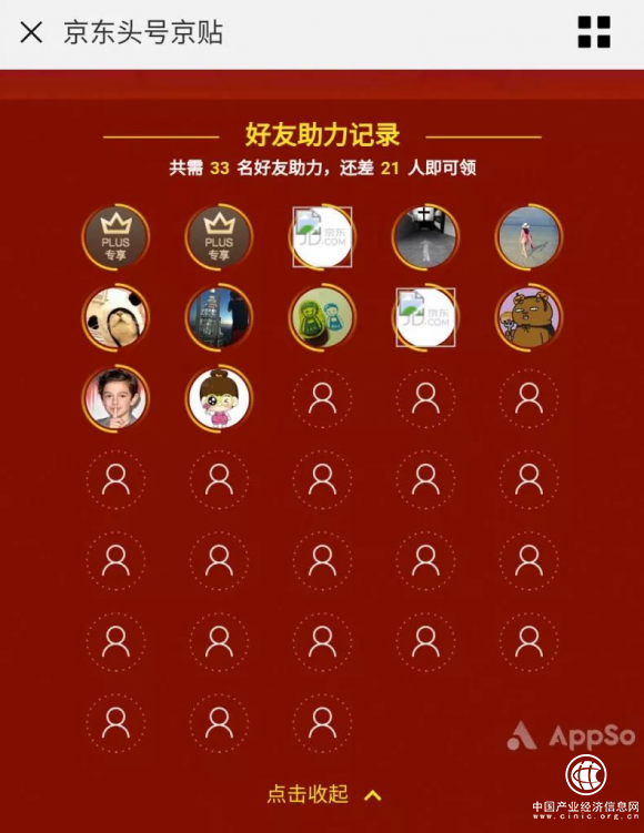 这次想要领取京贴可没那么简单,10元京贴需要11人次助力、20元京贴需要22人次助力、30元京贴需要33人次助力、其中PLUS会员减少2人