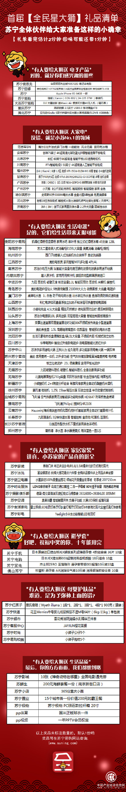 苏宁易购在双十一期间,从11月1日-11日,每天抽出1名“转运大狮”,送出超过30万元大礼包。
