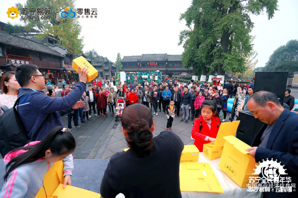 (11月3日-4日,苏宁“云游小镇”现身成都街子镇。)