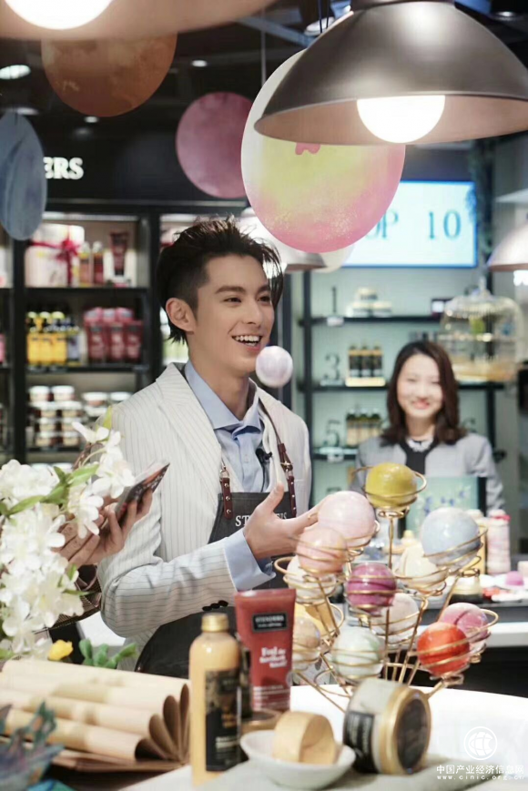 图为王鹤棣在施丹兰店内直播,并与在场观众互动