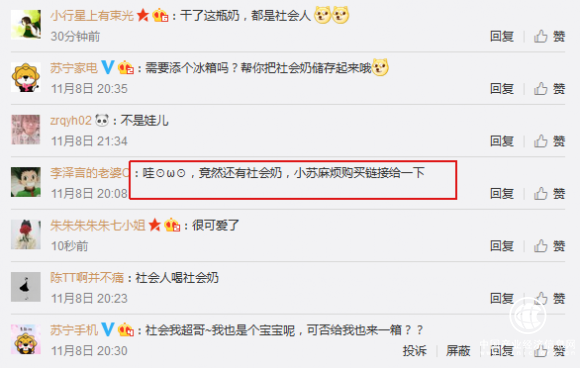 而苏宁超市官方微博的回复也相当一针见血,指出这款酸奶其实是为3岁以上的儿童设计的。不过,相信这些“不懂事”的大人们肯定是听不进去的。因为,从评论来看,一大批成年人已经在抢购“猪奶”的路上了。