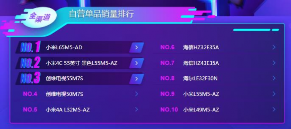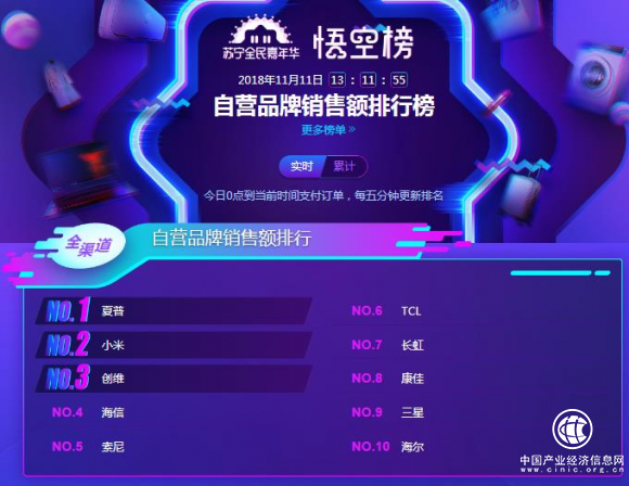 而从苏宁悟空榜来看,截至13点11分,自营电视品牌销售额最高是夏普、小米第二、创维第三。其中小米电视则是凭借着单品爆款的优势冲上了前三,夏普则更像是“全军出击”,各个系列的价位产品都推出了史无前例的优惠,吸引了很大一部分消费者选择!