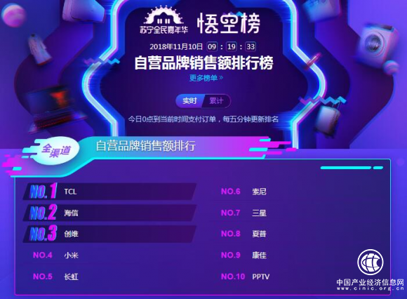 值得一提的是,目前苏宁易购双11正在如火如荼的进行中,悟空榜则每五分钟一次更新,实时记录销售数据,让消费者和商家及时的了解产品销量情况。而最后哪个电视品牌会夺得苏宁易购双11当天的销售额冠军?哪款电视单品会成为苏宁易购的消费者最喜爱的型号呢?其实这一切都还是未知数。