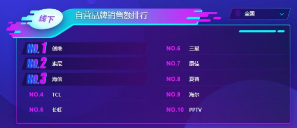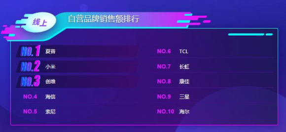 从线上销售额来看,夏普电视则依然是强势锁住了第一名,小米紧随其后,老牌电视厂商创维、海信、长虹等别位列第三、四、七的位置!
