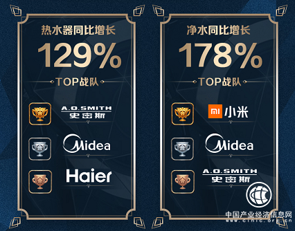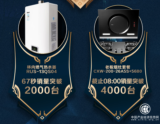 单品类方面,小米厨下式净水器MR424-A,实现10秒突破2000台。林内燃气热水器RUS-13QS04,67秒突破2000台。老板烟灶CXW-200-26A5S+56B0 8小时突破4000台,西门子洗碗机当天累计销量突破12000台。