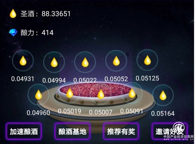 而说它是生态圈,则是因为用户不但可以在这里购买酒,还可通过“看广告”的互动游戏,获得“酿力”和“圣酒”。后者能够直接在酒链世界的商城中用来兑换实实在在的酒,可交易,还能凭此获得相应的分红。