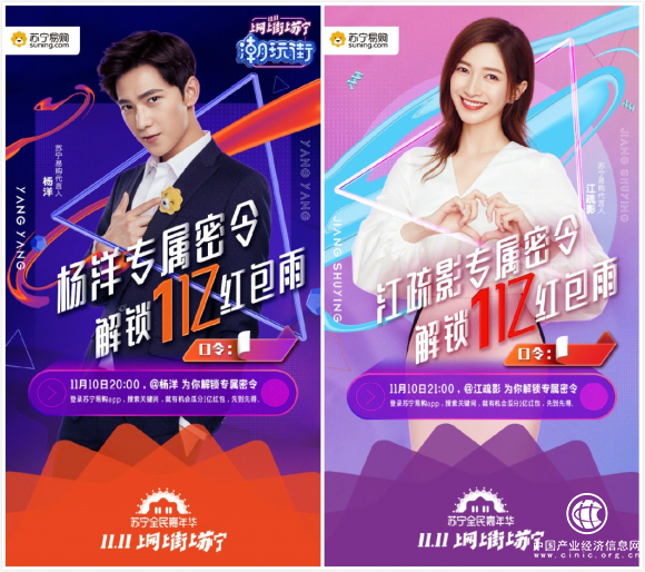 在双十一期间,两位代言人为苏宁易购全民嘉年华实力打call。苏宁易购借助代言人优势,为吸引年轻消费者下了不少的功夫。