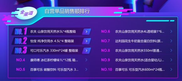 水/饮料:农夫山泉登顶
