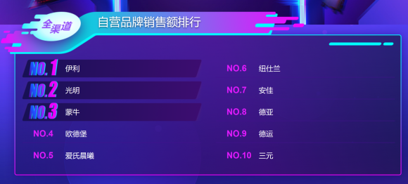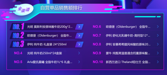 乳制品方面,虽然苏宁战报显示进口奶增长率更高,不过从销售额(品牌和单品)排行来看,依然是国产奶更受消费者青睐:截至11月11日下午15点25分,伊利、光明和蒙牛占据销售额榜前三,最受欢迎的进口牛奶爱氏晨曦仅排名第五;单品方面,国产品牌光明排在第一,进口品牌欧德堡排在第二,依然是国产品牌压了进口奶一筹。