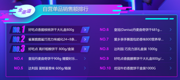 看完喝的以后我们自然也要看下吃的,在糕点饼干这一品类,好吃点、达利园和Danisa成为最受欢迎的三个品牌;单品排行上,好吃点雀巢表现出色,产品则包括饼干、巧克力威化和蛋糕,都很适合作为早餐来食用,不知道消费者是不是选择与乳制品一起来食用这些产品呢?我觉得可能性还是挺大的,毕竟品质生活是当下消费者的最大追求。
