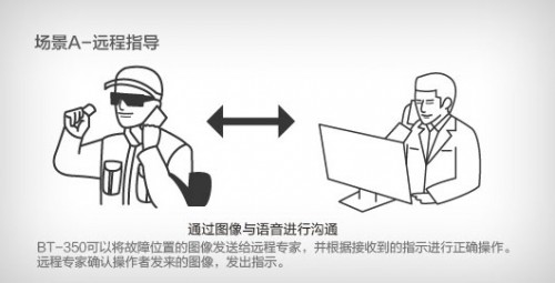 面向商业及工业市场的BT-350 AR智能眼镜是一款为工程作业人员量身打造的“虚拟帮手”,让作业人员可远程与专家一边沟通,一边进行现场作业,带来多方位的信息提供与指导帮助。