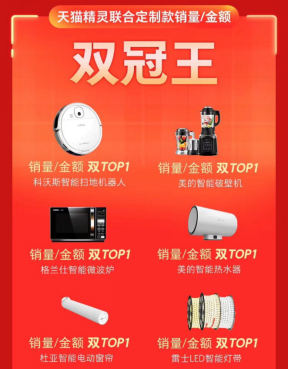 其中,两款中高端规划类扫地机器人产品DJ35和DN系列单品销售额均破亿元。其中天猫精灵联合定制DJ35,仅30分钟成交额就突破亿元大关,成为双11当天最快突破10万台的扫地机器人单品,拿下销量和销售额双冠王。