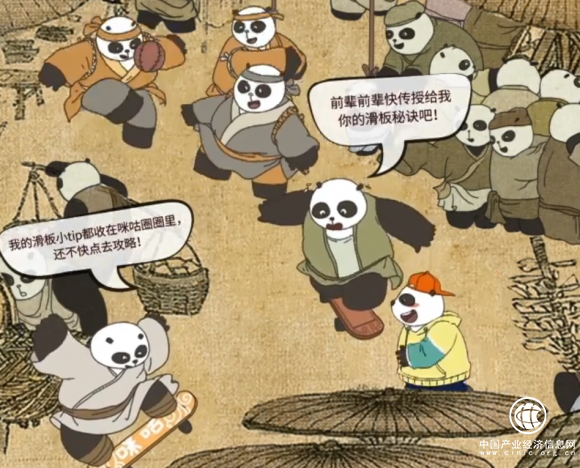 可爱的熊猫圈圈,在使用咪咕圈圈趣拍的时候,被时空的力量影响,突然穿越到《清明上河图》中来,成为画中的主角,在这里展开了一段奇妙的历史穿越之旅。熊猫惊在“新世界”发现了数百名形态各异的熊猫,有打篮球的、有成群结队玩蹴鞠的、有玩滑板的、有相约赛跑的、有观看表演的……