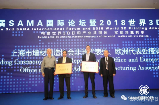 2018年10月26日,由上海市人民政府指导、上海市经济和信息化委员会支持、上海市增材制造协会主办的第三届SAMA国际论坛暨2018世界3D打印年会在上海盛大开幕。以“构建世界3D打印产业共同体,实现共赢共享”为主题,以“高端化、国际化、专业化、市场化”为特色,吸引了来自中国、美国、英国、法国、德国、荷兰、比利时、新西兰、加拿大、日本、韩国、瑞典、埃及、土耳其、乌克兰、瑞士、以色列等来自全球30余国近100位全球顶级专家以及近1000名参会代表出席。