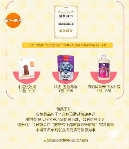 此次“苏宁超市杯” 宠物手机摄影大赛角逐出的20名幸运锦鲤,都会获得哪些礼物呢?