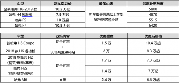 外界的认可助推哈弗H6登顶销冠,这也让哈弗想通过真金白银的优惠让利回馈大家的认可。哈弗推出购置税减半优惠,活动期间,最新上市的全新哈弗H6冠军版能享受高达50%的购置税补贴;新哈弗H6 Coupe和2018款H6运动版在购置税减半优惠基础上,另享现金优惠,优惠额度高达1.5万-2万元。对消费者来说,仅需8.3万起就能享有一台集“美貌与实力”于一身的神车。