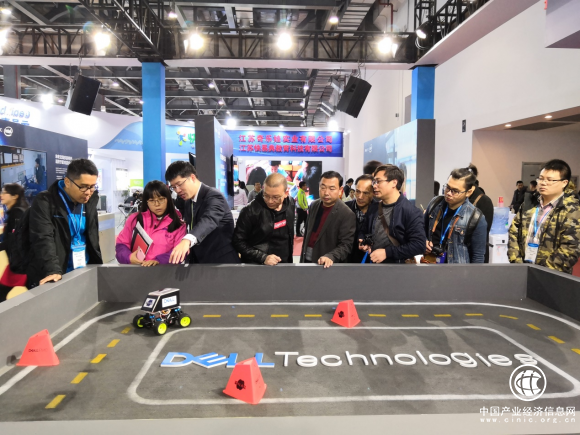 图2 由戴尔易安信大中华区市场团队、卓越研发中心团队、售前团队、行业架构师团队、解决方案中心团队员工设计制作的无人驾驶小车,在教育装备展上引起了观众的深厚兴趣。