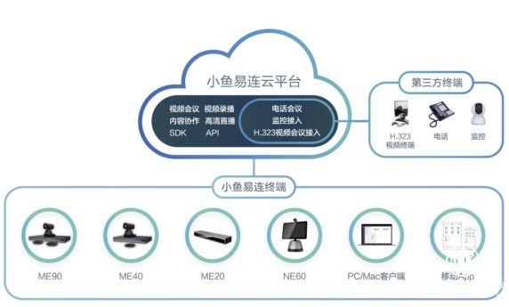 小鱼易连云视频平台全部采用互联网接入,国外客户及全球办事处只需方便的互联网本地服务即可连接。小鱼易连多样化的智能一体化终端覆盖全集团事业部会议室,领导办公桌面、大型报告厅、矿井在线和所有员工的手机终端,实现了全业务场景覆盖。