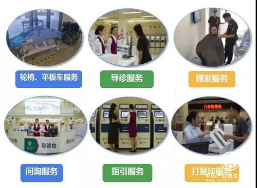 便民服务中心以病人为中心,设置了轮椅平板车服务、导诊服务、理发服务、问询服务、指引服务、打复印服务等一系列便民服务项目。
