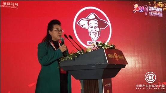 (图:天农公司董事长张正芬博士在发布会上介绍天农原种清远鸡产业链)