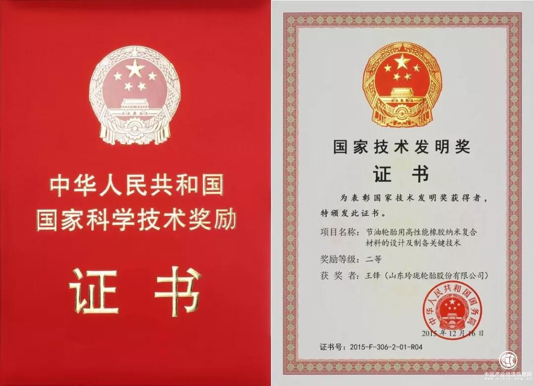 玲珑轮胎国家技术发明奖证书