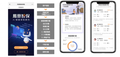 在体验层面,便捷和精准是主要特色。用户只要简单输入家庭人员情况、资产状况等信息,“凤凰智保”就可以快速给出家庭综合保险解决方案,为全部家庭成员量身定制保险配置组合,实现个性化保险配置。