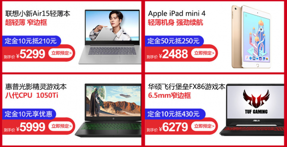 双十二苏宁电脑预售会场,除了华硕飞行堡垒FX80外,还有联想小新Air15轻薄本预付定金10元抵用210元,苹果iPad mini 4预付定金50元抵用250元、雷神和机械师多款游戏本预付定金20元抵420元等等,对吃鸡党来说,目前正是入手新装备的最佳时机,快去苏宁易购电脑会场提前预定抢购。