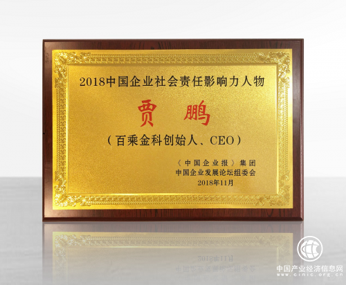 (百乘公益基金发起人、百乘金科创始人贾鹏获“2018中国企业社会责任影响力人物”)