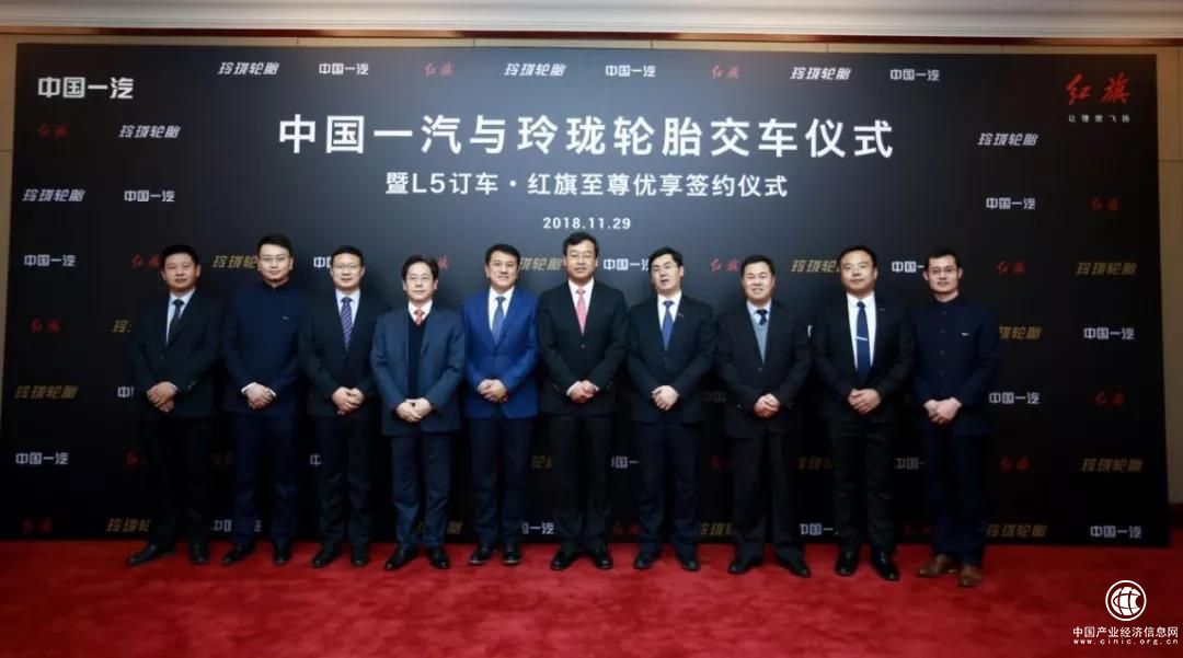 2018年11月29日,一场特殊的仪式——中国一汽与玲珑轮胎交车仪式暨L5订车·红旗至尊优享签约仪式在一汽总部举行。中国一汽党委常委、副总经理孙志洋与玲珑轮胎董事长、总裁王锋共同出席,玲珑轮胎成为全球首批限量定制红旗L5尊享车主,一场与红旗同行的尊贵之旅正式开启!
