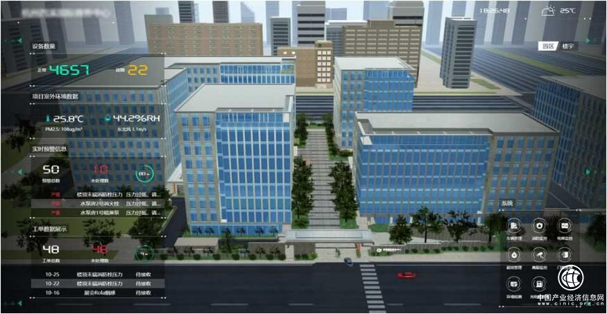 图:物联网3D可视智脑,通过展示物联网数据、实景联动、业务处理提醒等立体、直观交互功能,实时更新与掌握园区动态。
