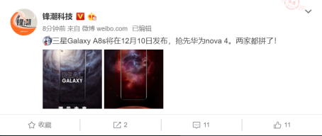 总体来说,三星自今年下半年开始,Galaxy Note9、Galaxy A9s、Galaxy A6s等产品均带来了不同程度的创新的,如今来到了12月份,Galaxy A8s这一中端“重磅”产品的释出,势必将为手机市场再掀波澜,让我们静待12月10日的到来。
