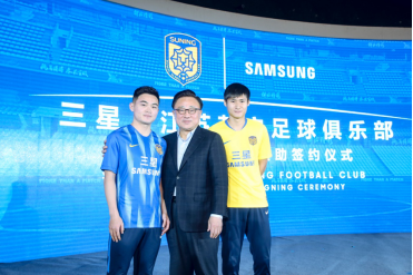 2018年12月6日,三星电子与苏宁在南京正式达成战略合作伙伴关系,并就三星电子赞助江苏苏宁足球俱乐部举行了赞助签约仪式。通过此次签约,三星电子将在2019- 2021赛季成为江苏苏宁足球俱乐部的顶级赞助商,并获得球衣的胸前和背后广告。苏宁将士将身披印有“三星(Samsung)”标志的全新战袍,征战未来三个赛季的所有赛事。