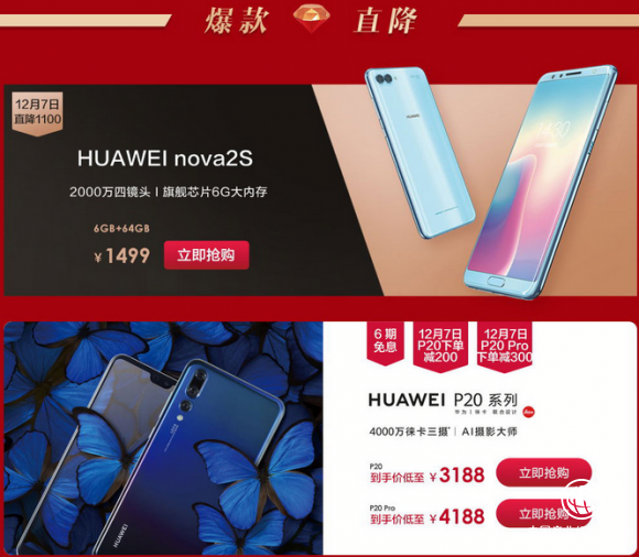12月7日,苏宁易购华为超级品牌日正式上线,华为手机“谢谢你的AI”回馈新老用户,在苏宁易购有多款机型可供选择,购机最高优惠1100元。华为Mate 20、nova 3 任性付享6期免息,华为P20立减200元、P20 Pro立减300元,任性付享6期免息。另外还有整点下单限量送福袋,以旧换新最高返450元等。