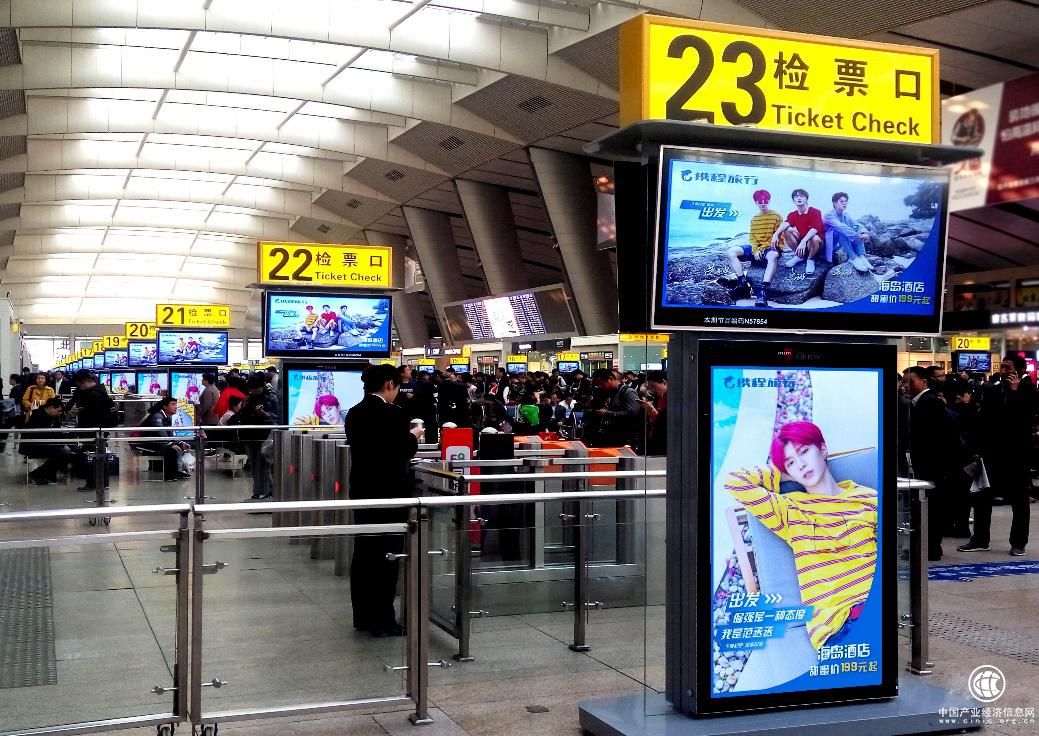 “环”——兆讯的媒体位于检票口、等候座椅两侧,矩阵式排列,打造出环形矩阵,完整覆盖候车大厅。