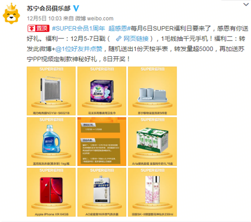 12.5-12.7日关注苏宁易购会员微博,进入活动会场,1云钻抽千元手机;点赞+转发+@1名好友,随机送出1份天梭手表。