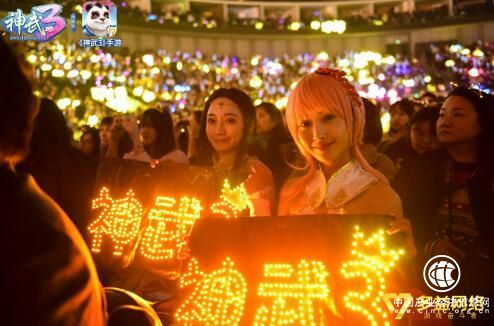 【图2:《神武3》现场与粉丝一起为爱豆打call】