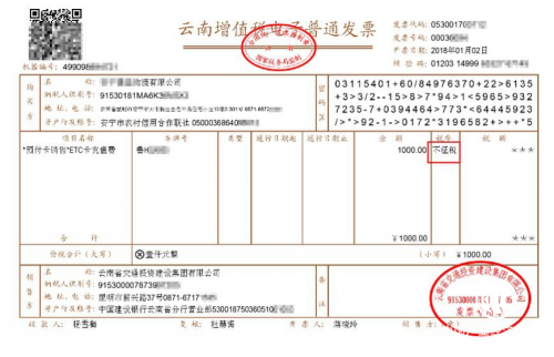 2018年1月1日零时,全国收费公路通行费电子发票服务平台票根正式上线运行。山东省开出全国第一张充值类不征税电子发票,辽宁省开出全国第一张消费类征税电子发票,其余省(区、市)也相继启动了开具工作,均已开出发票。