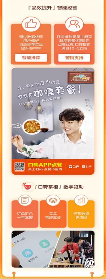 八位毫无餐饮经验的年轻明星们通过口碑app和专业版雅座一体机,轻松地帮助顾客完成落座、扫码点餐、下单并自助取餐的全过程,而他们在节目中的真实表现,也带给了观众欢声笑语,相信他们会继续保持,为我们带来惊喜,将完美餐厅经营得越来越好。