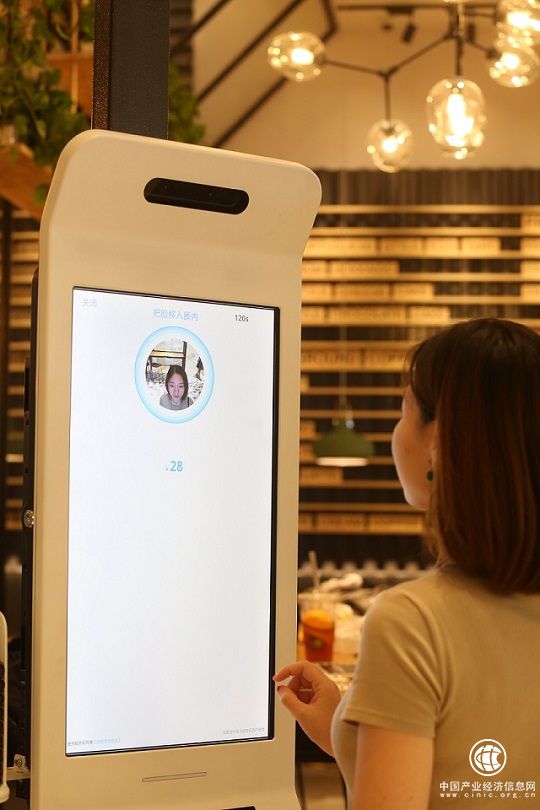 年轻顾客在餐厅使用Smile to Pay刷脸支付功能支付餐费