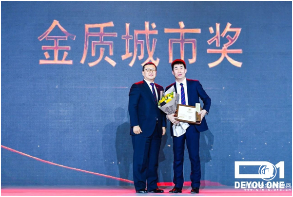 新年将至,大会特别对2018年的优秀城市和个人进行了嘉奖激励。奖项设置涵盖业绩、管理、区域等多个层面,其中,金质城市由店均业绩最好的天津德佑摘得,金色城市则花落发展规模最大的武汉德佑。