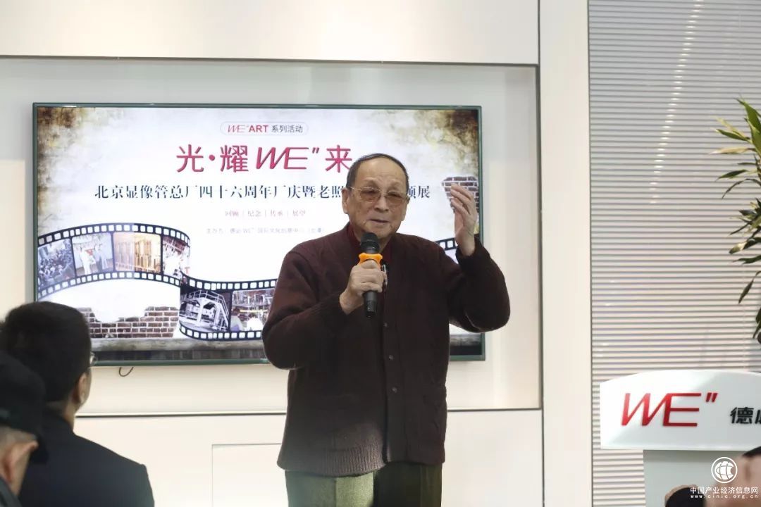 在展览开幕式上,北京易亨电子集团总经理孙福清致开幕辞并介绍到,北京显像管总厂成立于1972年,通过多年艰苦卓绝的技术攻关,自主研发了多种型号的黑白显像管,及至1980年代末,北显厂年产能突破百万,员工上千人,产品被用于“牡丹牌”、“熊猫牌”等国产电视上,走入千家万户,更广泛用于教育,科研,医疗等领域,甚至远销海外。1994年后,随着北显厂转制被并入易亨电子集团,原有的厂房也一度被用于商业,后又经过多年闲置,曾经的繁荣都只存于档案资料中。