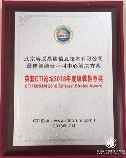 容联获2018年度编辑推荐奖—最佳智能云呼叫中心解决方案