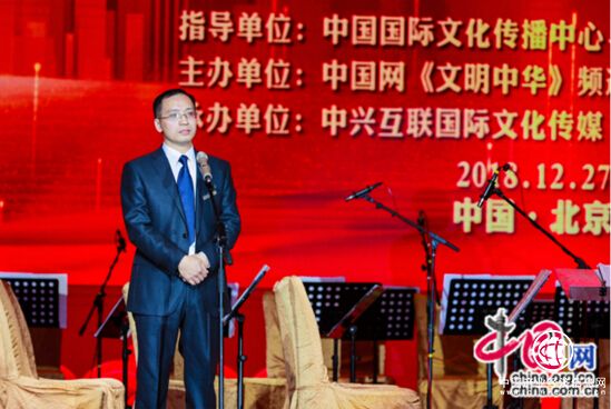 中国国际文化传播中心执行主席龙宇翔致开幕词时表示:中国网文明中华频道成立以来,讲述中华文明故事,传播文明中华声音,推动中华文化走向世界,让世界各国人民更加深入地了解中国,向世界展现文明、民主、开放、进步的大国形象,得到了国内外受众的广泛赞誉,在世界各国产生了积极影响,成为各国人民了解中国的重要渠道。我们要不忘初心,牢记使命,以坚定的文化自信和责任担当,结合新的时代传承和弘扬中华优秀传统文化,把绚丽多彩的文明中华推向世界,为增进中国同世界各国的联系与友谊做出新的贡献。
