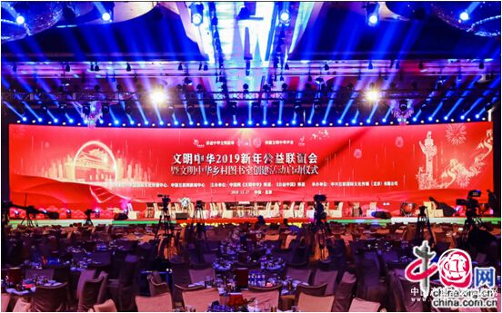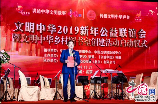 中国网讯 12月27日,中国网文明中华频道、公益中国频道联合中兴互联国际传媒在京举行“文明中华2019新年公益联谊会暨文明中华乡村图书室创建活动启动仪式”。十一届全国政协副主席白立忱出席并宣布活动正式开始!