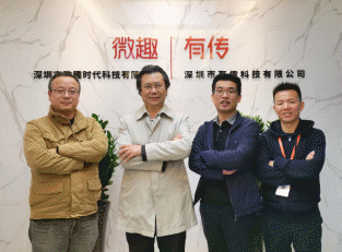 (图片左一:有传产品经理王烽;左二:中华时报杨会长;左三:有传CEO丁智;左四:有传运营总监杨建)