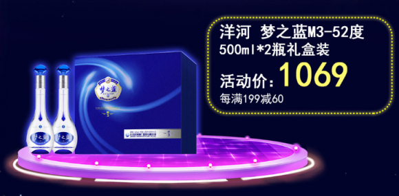 眼下,春节已经近在眼前了,不少外出的游子也要开始张罗起带回家的年货。给父亲买瓶好酒,绝对让你成为亲戚朋友眼中的孝顺儿女。1月5日,洋河梦之蓝M3 52度500ml*2瓶礼盒装白酒仅售1069元,还享受每满199减60的优惠,可以说是相当划算啦。