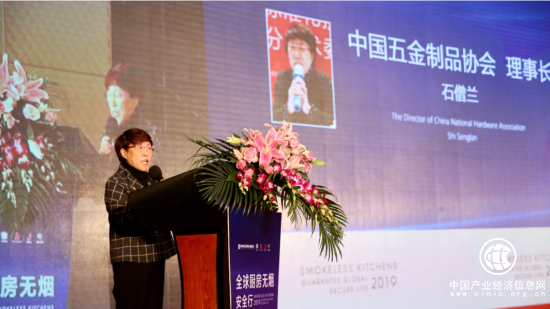 中国五金协会理事长石僧兰女士致辞。石僧兰讲到,无烟厨房是消费者的梦想,集成灶企业应不断创新,研发更符合市场需求的产品。集成灶产品在嵊州市委市政府的推动下,应坚定开发信念,持之以恒,努力创新,为消费者提供健康、安全、环保、智能的产品。石僧兰表示实现无烟厨房是大家共同的目标和策略,期待全国中小企业联盟更加关注中国企业,推进全国沟通和合作,为中国和全球的经济发展做出贡献。