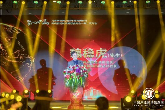 中国商报新闻出版总社社长魏稳虎、中国商业联合协会会长姜明相继上台致贺词,向会议的召开致以热烈的祝贺,向出席会议的各方嘉宾表示热烈欢迎。