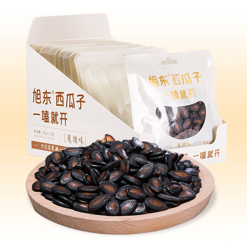 颗颗饱满,粒粒入味;一嗑三开,舔嘴回香。借助“一嗑就开”的品牌优势,旭东西瓜子备受消费者喜爱,三年内销量涨了三倍,一跃成为最受欢迎的西瓜子品牌之一。